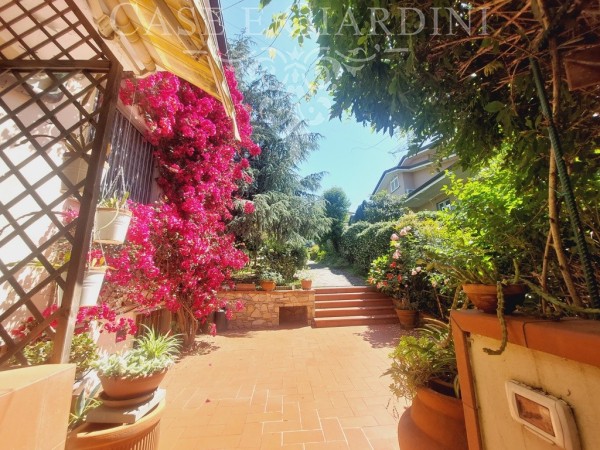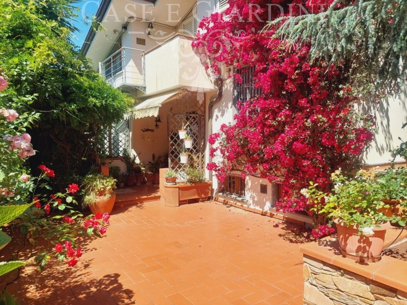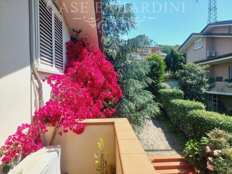 Il giardino su tutti i lati offre alla casa una cornice ricca di personalità grazie alla notevole varietà di piante che gli attuali proprietari hanno sapientemente disposto.