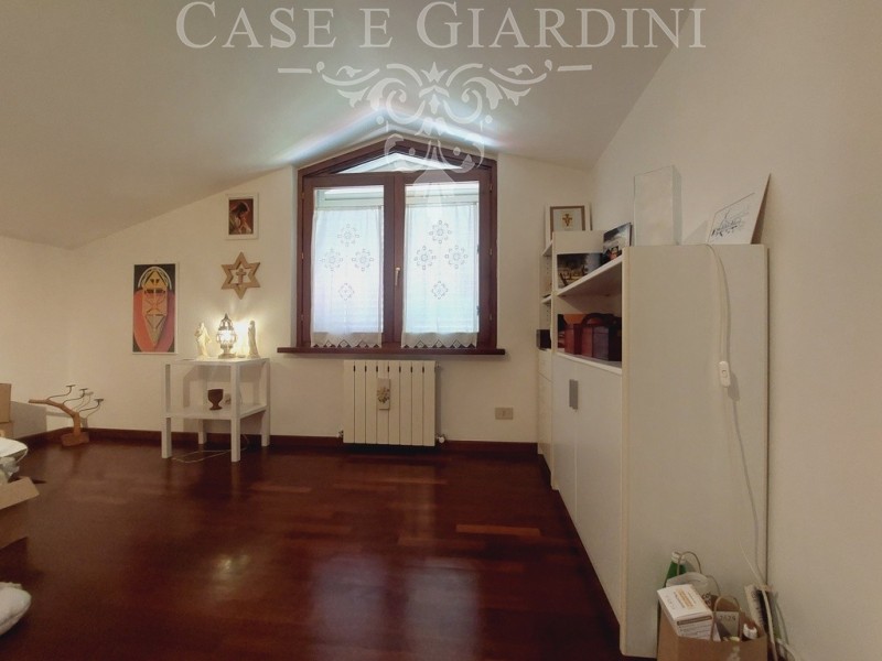 Il piano mansardato – accessibile sia internamente che dall’esterno – è uno spazio indipendente e versatile: due camere, bagno, soggiorno con terrazza vista lago e pavimentazioni in parquet e cotto.